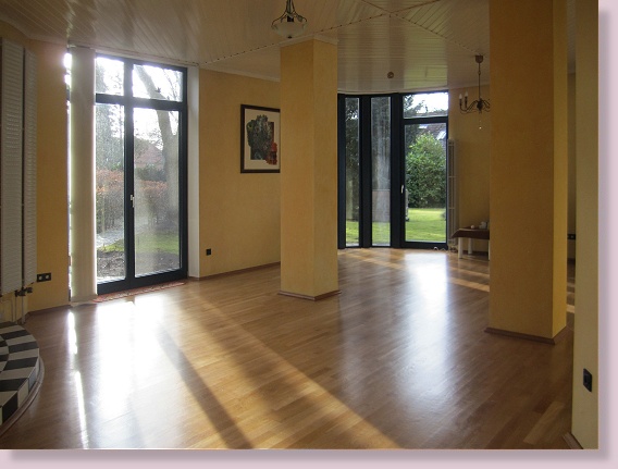 Grundfläche 55 qm, vom Garten umgeben, Lamellen an allen Fenstern, Musikanlage vorhanden.